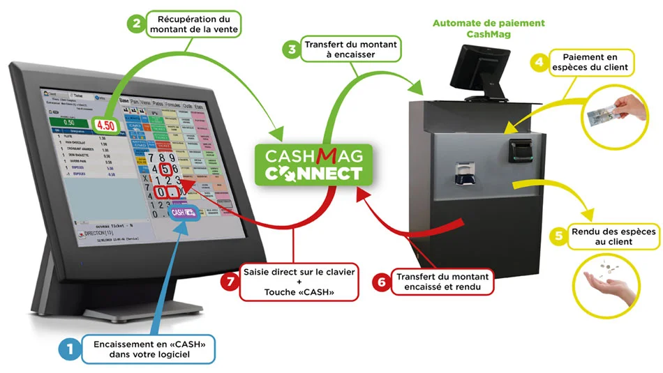 Ne changez rien à vos habitudes, optimisez-les ! Nos solutions s’intègrent parfaitement au sein de votre ligne de vente, ainsi l’identité visuelle de votre magasin est préservée. Conservez votre logiciel de caisse actuel, grâce à notre interface brevetée, développée spécialement, qui récupère les montants affichés pour les transmettre à l’automate : il vous suffit d’appuyer sur la touche “Espèces”, le reste s’effectue automatiquement!