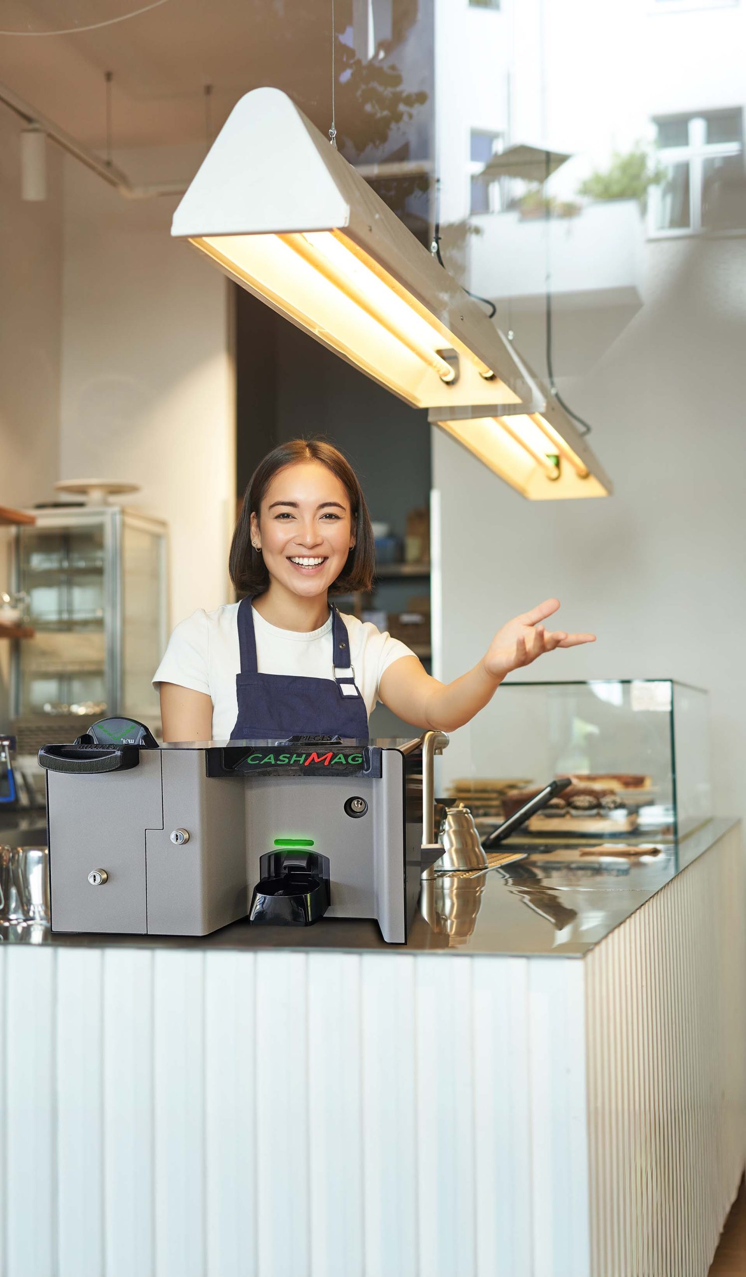 Le DESKTOP se pose directement sur votre comptoir, sans agencement. Il intègre toute la puissance des autres assistants caissier CashMag dans un format mini, il est aussi facile à poser et intégrable.